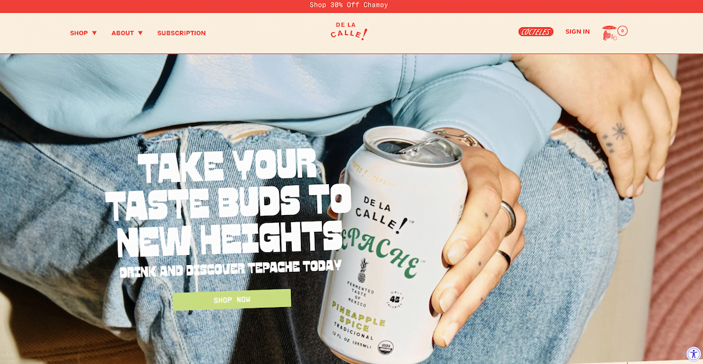 De La Calle is a website whose colors perfectly align with the company's branding. This also applies to the typography, which immediately makes you thirsty for one of their delicious Mexican soft drinks.