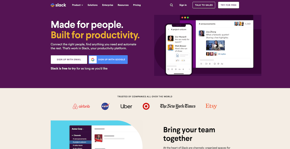 Work chat software is fundamentally boring. Slack manages to make it exciting through their use of color and playful design.
