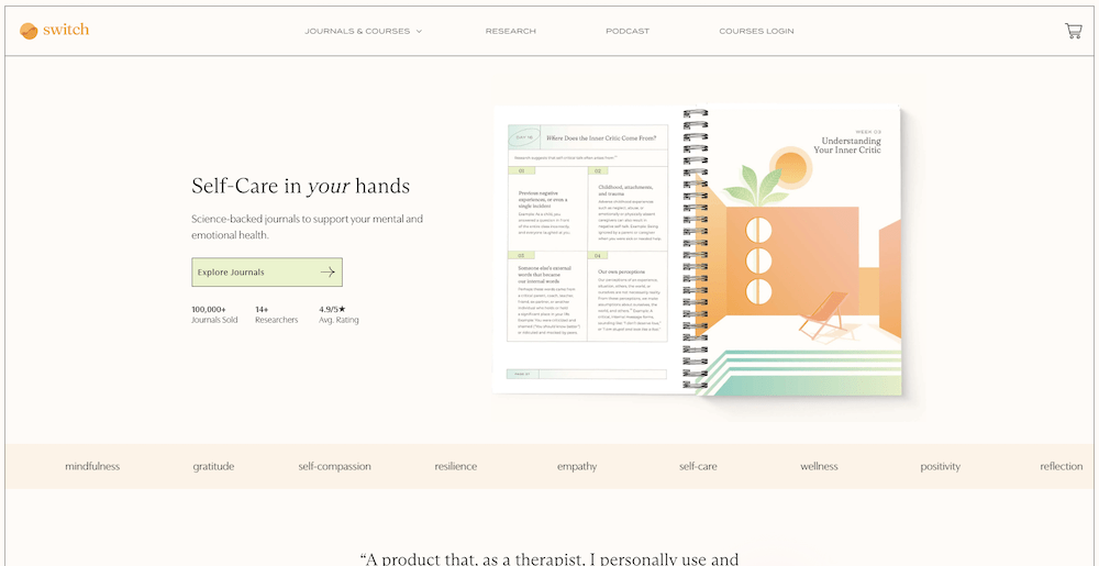 Switch Research features a calming design that perfectly complements the site's subject matter. Light colors, an elegant typeface, and subtle animations all work together seamlessly.