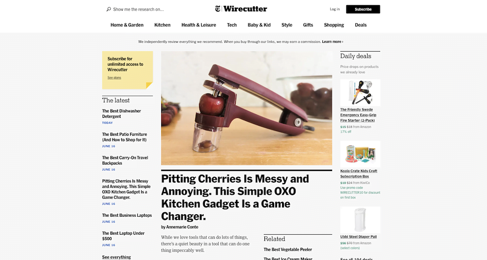 It helps if you, as an affiliate site, have access to the design team of The New York Times. When WireCutter was sold for millions to one of the largest newspapers in the world, the quality of its design certainly didn't suffer.