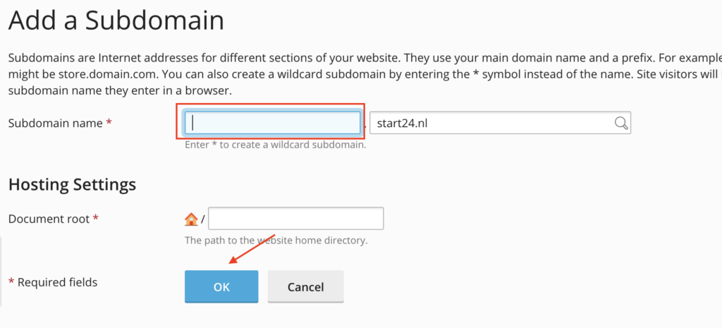 Creating a subdomain at Cloud86 can be done via Websites & Domains » Add Subdomain.