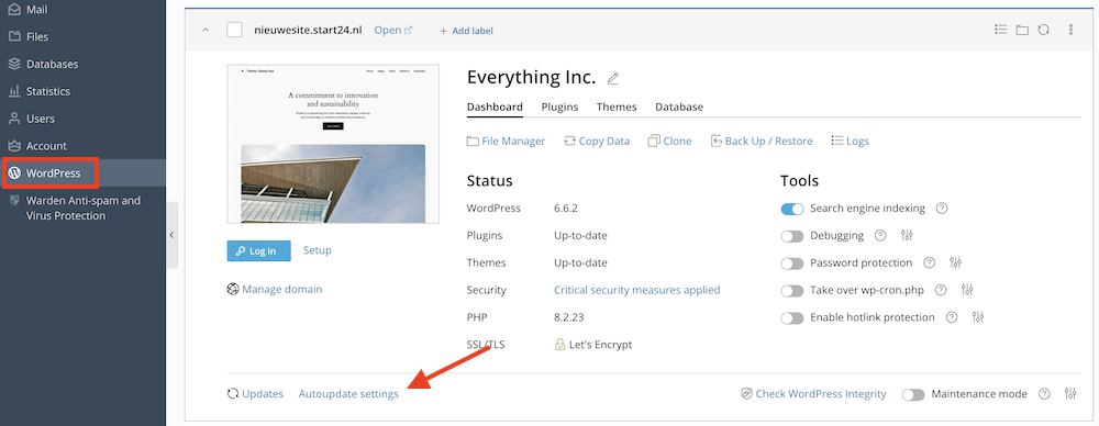 Here you can then – should you wish to do so – enable automatic software updates for your WordPress site.
