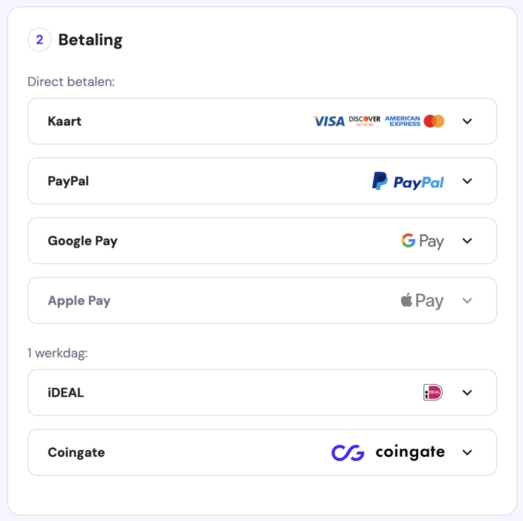 After you have chosen a subscription period, you need to create an account. The easiest way to do this is via a Google account (top button) if you have one.