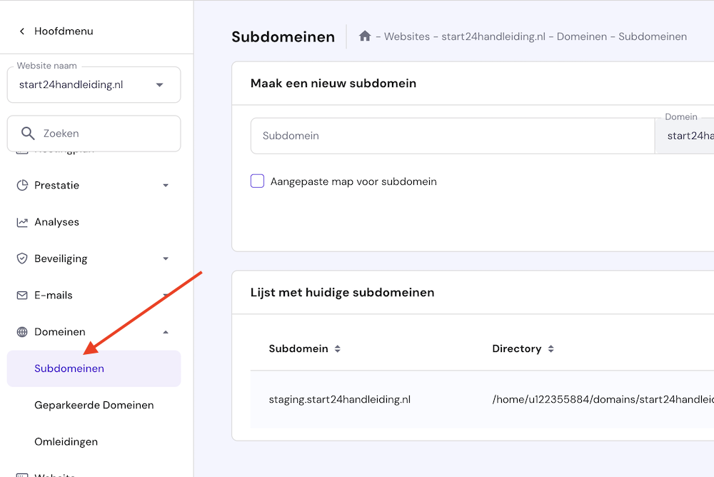 Next, as you scroll down, you'll see a list of your subdomains. From there, you can also delete subdomains using the trash can icon.